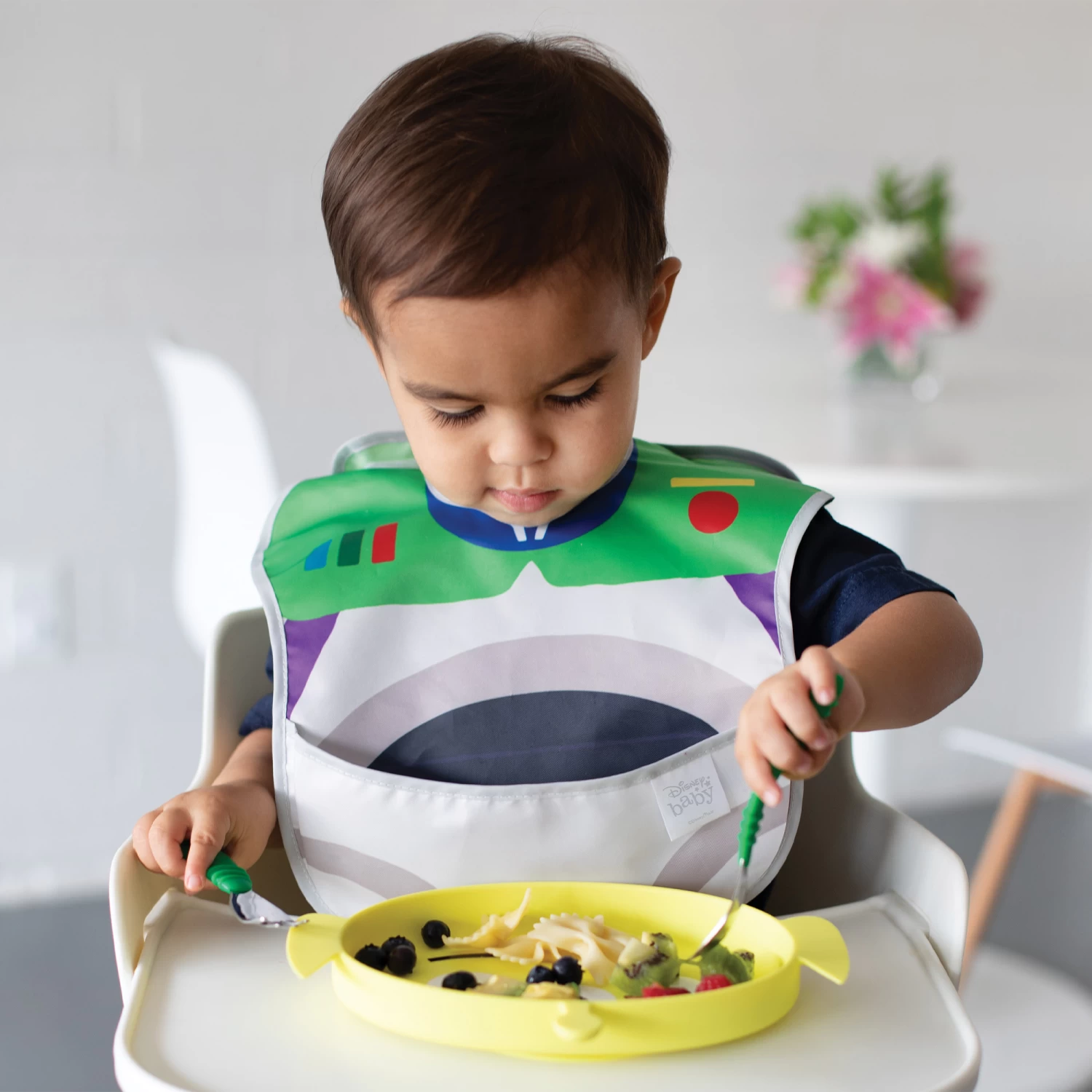 Spills, drips, splats – this looks like a job for the SuperBib®! Now with capes for added fun! Our award-winning, best-selling SuperBib takes Baby from first foods all the way through the toddler years, foiling nasty stains along the way! Made from Bumkins’ lightweight, easy wipe, machine washable waterproof fabric, the SuperBib is both comfortable and durable. Sized to fit ages 6 to 24 months, these bibs feature a back shoulder Velcro closure for a quick, adjustable and tug-proof fit. With a handy catch-all pocket for containing spills, this bib is a great addition to any mealtime! Bib measures approximately 10” across and 9” from neck down. BPA, PVC, vinyl, phthalate and lead free. Designed in Arizona, responsibly made in China.