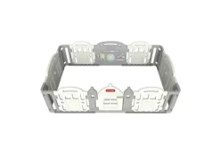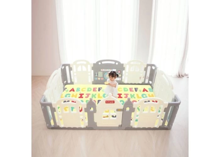 - Safety features include double lock for secure locking, rounded edges to prevent injury to kids, and non-slip rubber feet that make the playpen slip-resistant and stable.