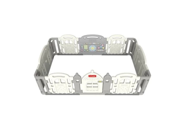 - The Castle comes with one hinged swinging door with safety lock, four medium panels, four connectors, two large panels, one activity board, and four panel holders.