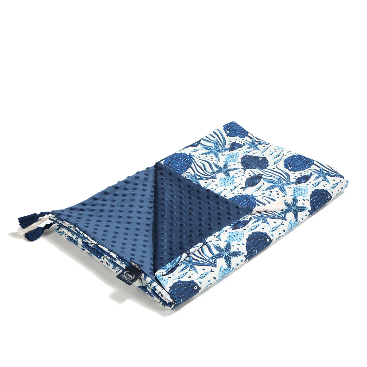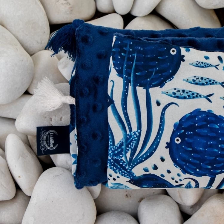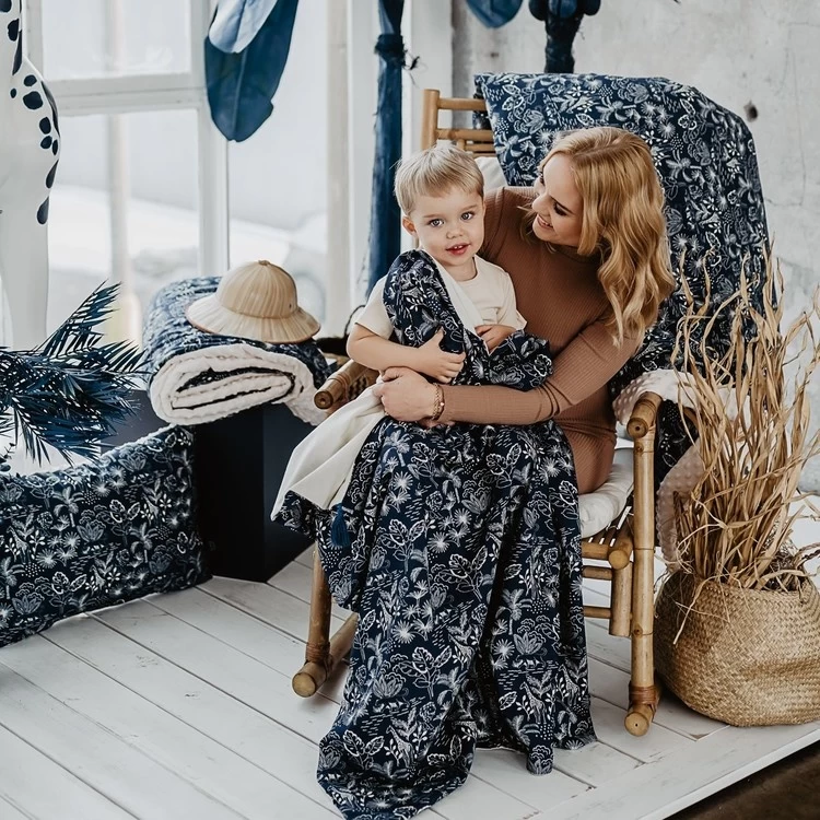 Double-sided blanket without filling sewn from two layers of material: one is made of the highest quality cotton, soft and airy, and the other is elegant and nice to the touch minky or velvet. The blanket is versatile: it will prove useful as a blanket during naps and will wrap up your baby nicely in the stroller during walks.