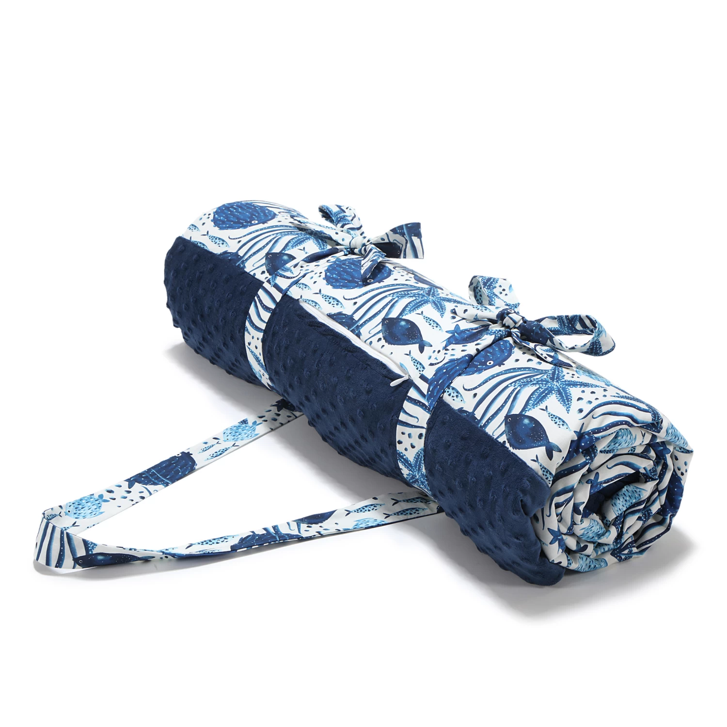 Its lightweight filling makes it also perfect for home: as a mat for the hard floor. One of the sides has ribbons sewn into its edges for comfortable folding of the blanket, while another, longer ribbon makes it easy to carry. The picnic is protected by waterproof fabric from the bottom, making it safe from any damp surface.