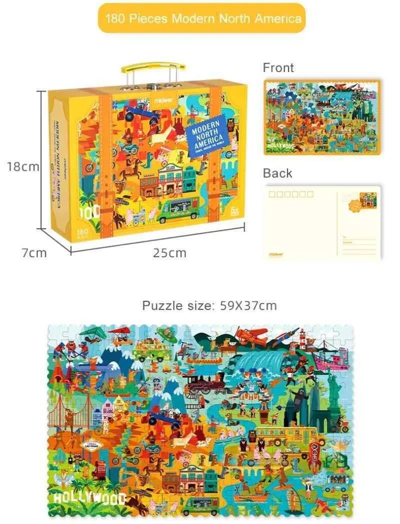 - What’s included:180 piece puzzle, 1 postcard, 1 storage briefcase