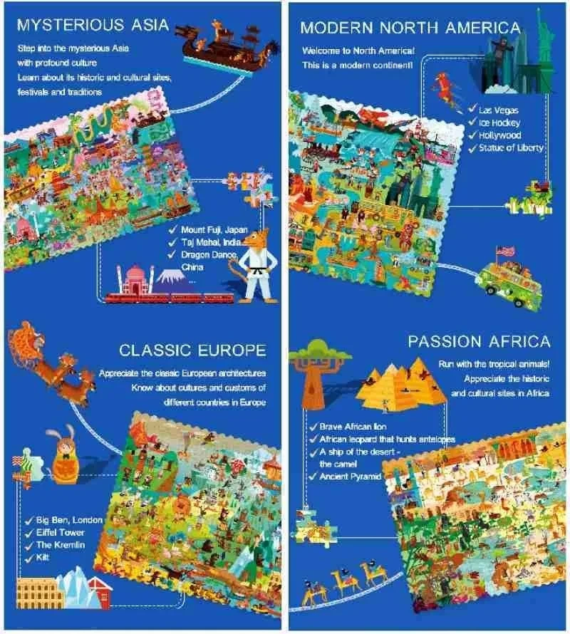 - UNIQUELY DESIGNED: Artistically-designed jigsaw puzzle with famous landmarks and cultural illustrations.