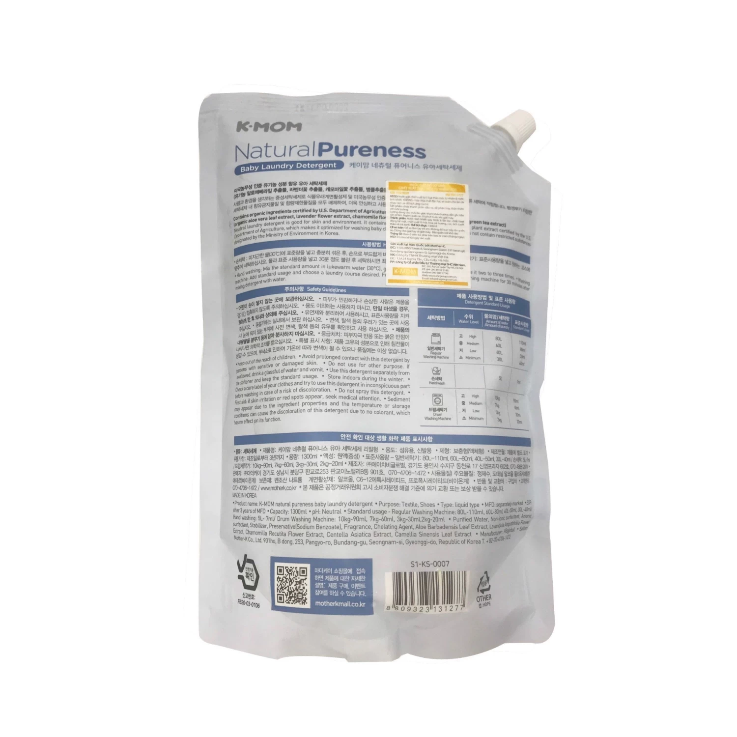 K-MOM laundry detergent for babies is a highly biodegradable, eco-friendly, and neutral laundry detergent, and its main ingredient is seed oil surfactant, which is a surfactant derived from plants. The product provides strong cleansing power and plenty of foam, making it an appropriate laundry detergent for babies.