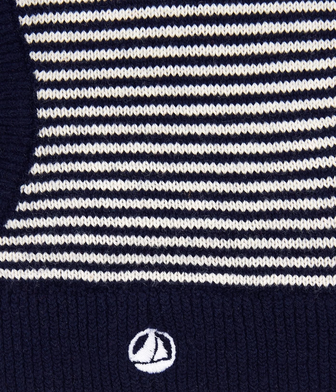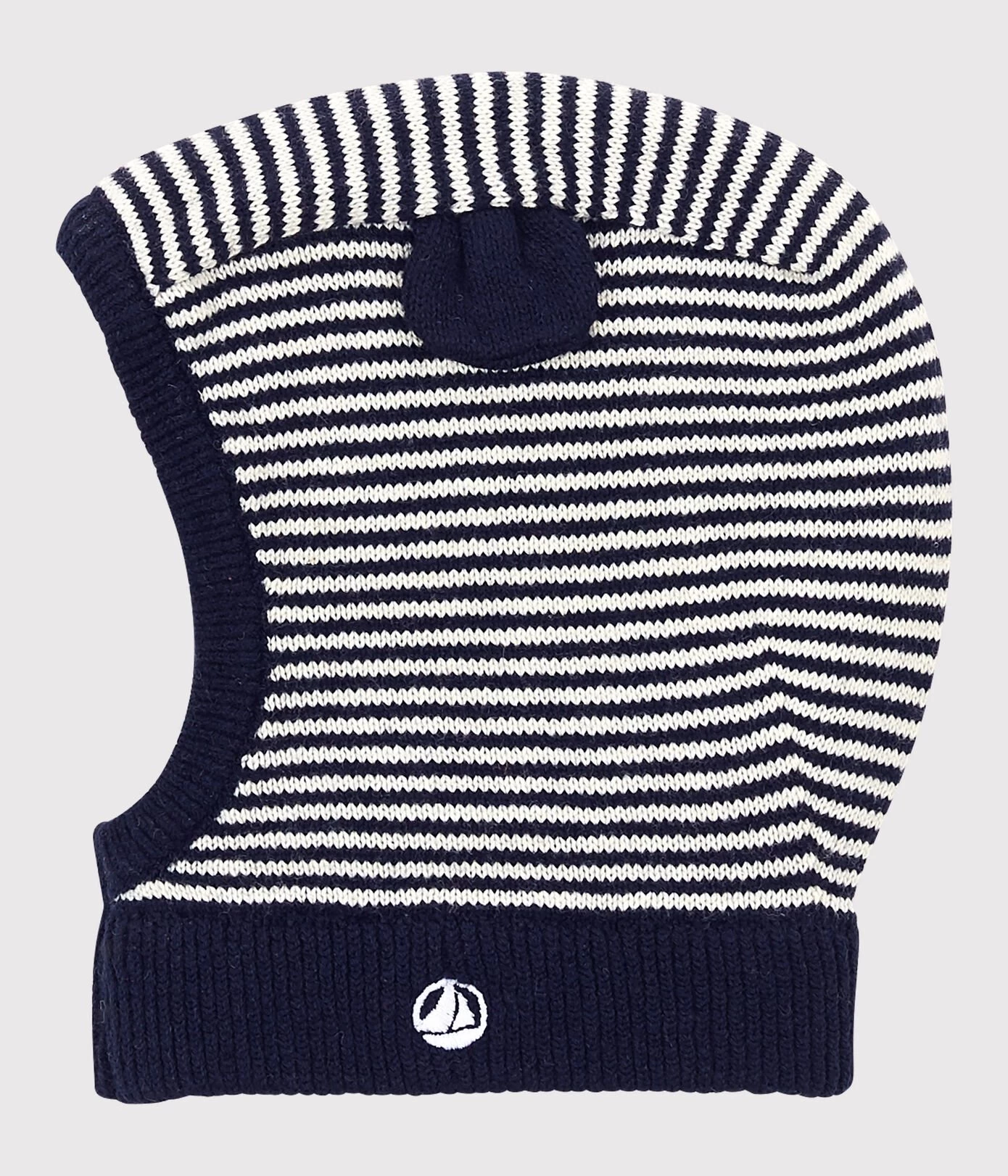 Petit Bateau BABIES’ COTTON BALACLAVA SMOKING Blue/MARSHMALLOW White